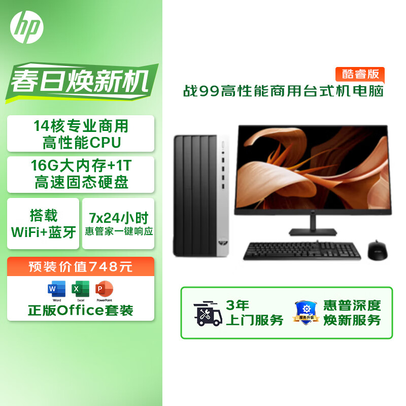 惠普(HP)战99 台式电脑主机(酷睿13代i5-13500 16G 1TSSD)27英寸大屏显示器 WiFi 蓝牙 14核高性能CPU价格:4299.00元!