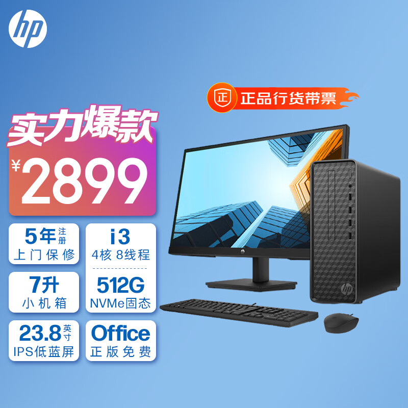 惠普HP 星Box商务办公台式电脑主机(12代酷睿i3 8G 512G高速固态硬盘 WiFi 注册五年上门)+23.8英寸价格:2899.00元!
