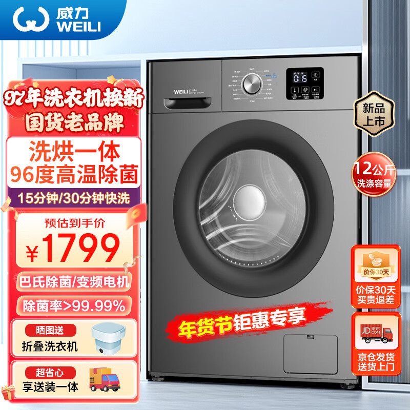 威力(WEILI)滚筒洗衣机全自动 12KG变频大容量洗烘一体 祛味空气洗蒸汽除菌 BLDC节能电机 XQG120-1216DPHX价格:1799.00元!