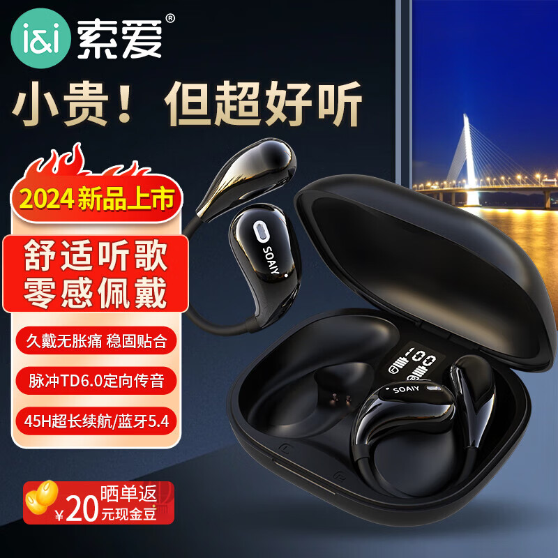 索爱(soaiy)GD31开放式概念耳夹式蓝牙耳机真无线 长续航不入耳跑步音乐通话降噪 苹果华为小米手机通用黑武士价格:98.10元!