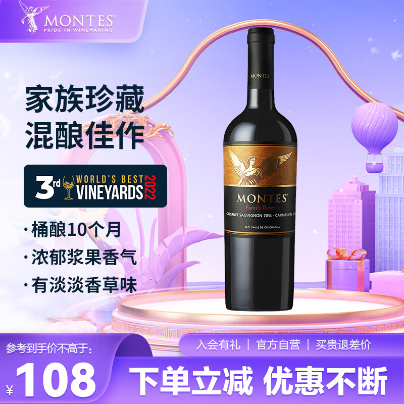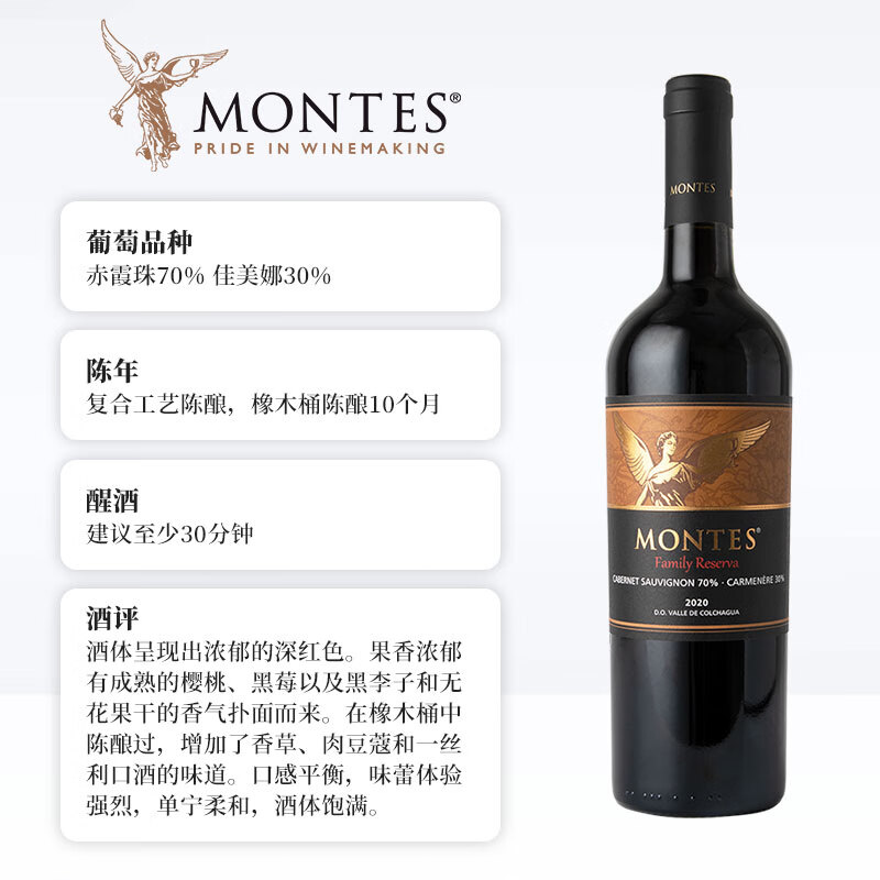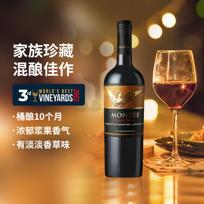 MONTES蒙特斯家族珍藏混酿红酒葡萄酒750ml口粮圣诞礼物智利原瓶进口价格:99.00元!
