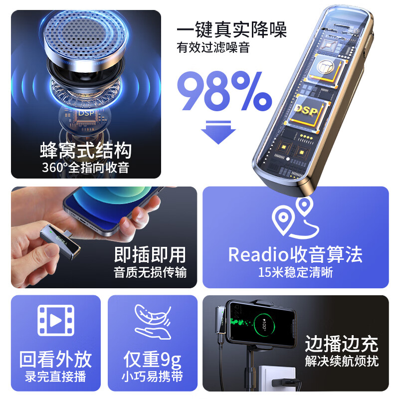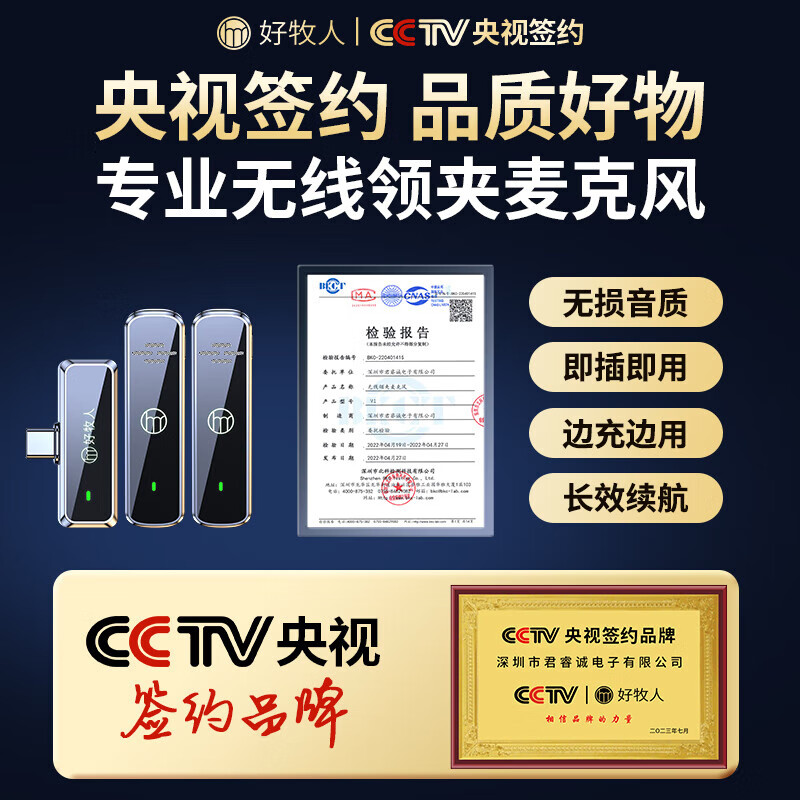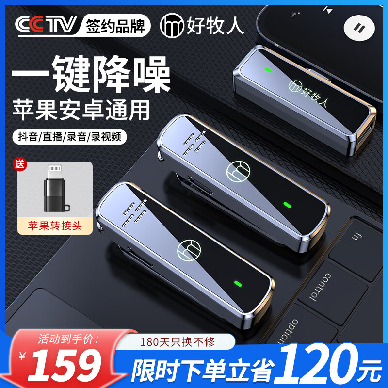 好牧人V1无线领夹麦克风小蜜蜂收音麦户外专业降噪采访拍视频专用抖音主播录音直播设备手机话筒一拖二价格:159.00元!