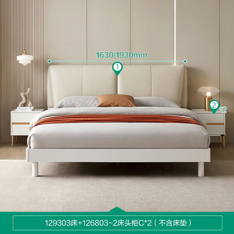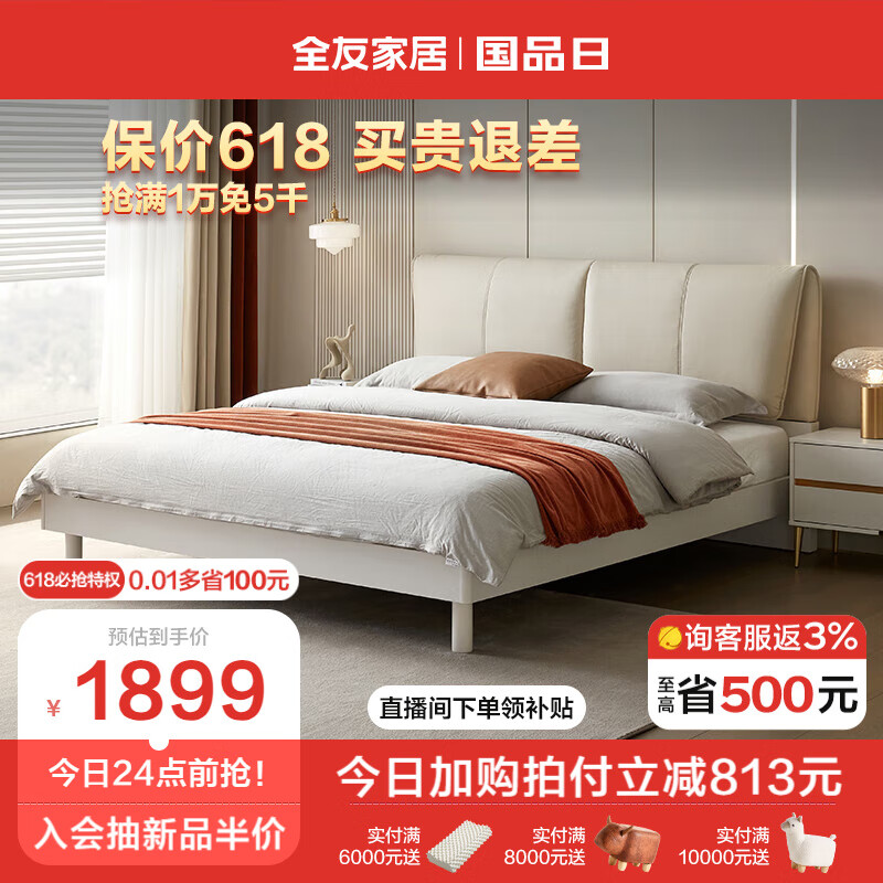 全友家居 床简约风双人床大象耳朵皮艺软床1.5米主卧大床家具129303价格:2712.86元!