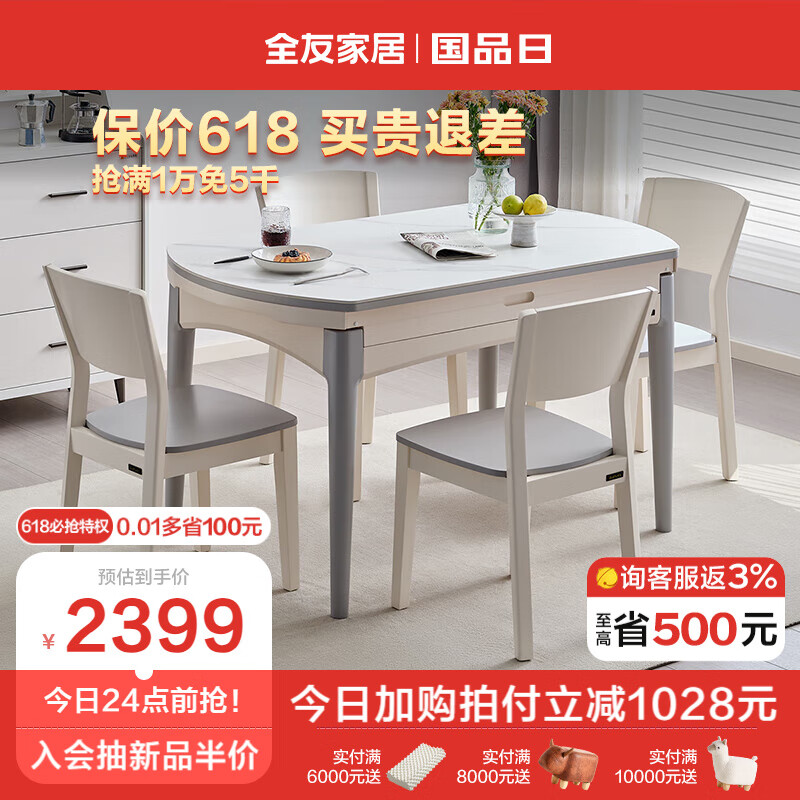 全友家居 餐桌椅 现代简约实木框架餐桌椅 可伸缩折叠岩板餐桌DW1028K价格:3427.14元!