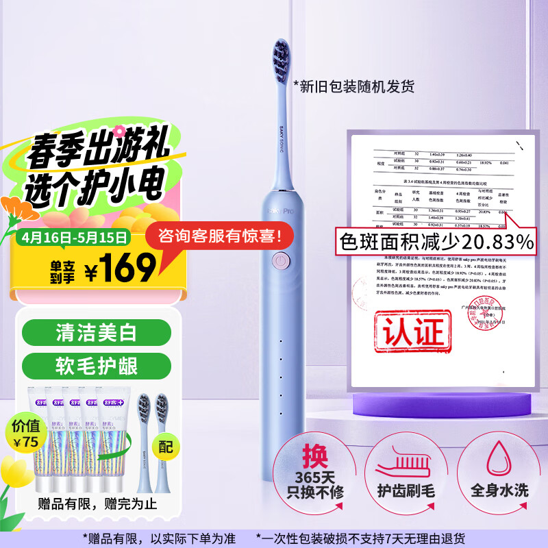 舒客舒克情侣电动牙刷智能清洁成人/学生男友/女友软毛声波5档模式母亲节礼物G33A蓝莓价格:199.00元!