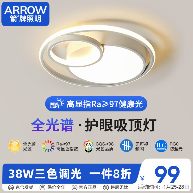 ARROW箭牌照明 吸顶灯led卧室灯北欧后现代阳台过道餐厅JPX167价格:99.00元!