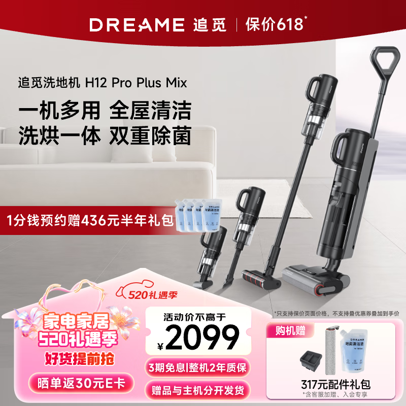 追觅无线智能洗地机H12 Pro Plus Mix家用除螨扫地手持洗拖一体二合一多用吸尘器价格:2099.00元!