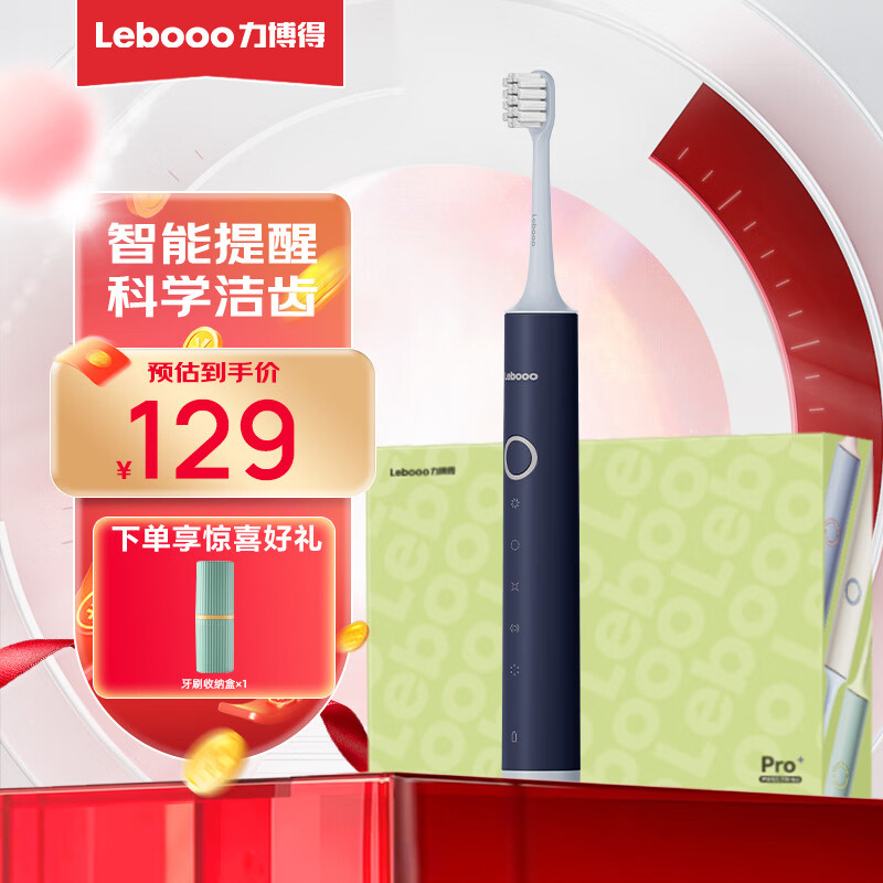 力博得(Lebooo)电动牙刷智能震动全自动充电式成人情侣节日礼物 升级120天续航 悦心PCN3款 12刷头(疾速回蓝)价格:159.00元!