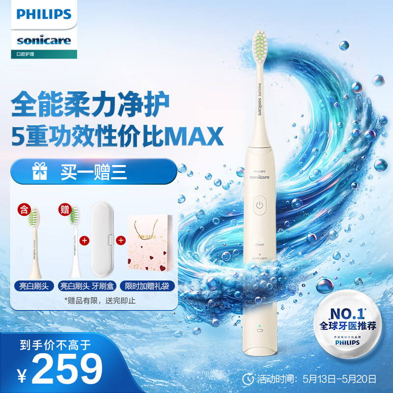 飞利浦(PHILIPS)电动牙刷S3成人 520情侣送男/女友 母亲节礼物 软毛柔和亮白刷头5效宝藏刷 瑞斯白HX2471/03价格:279.00元!