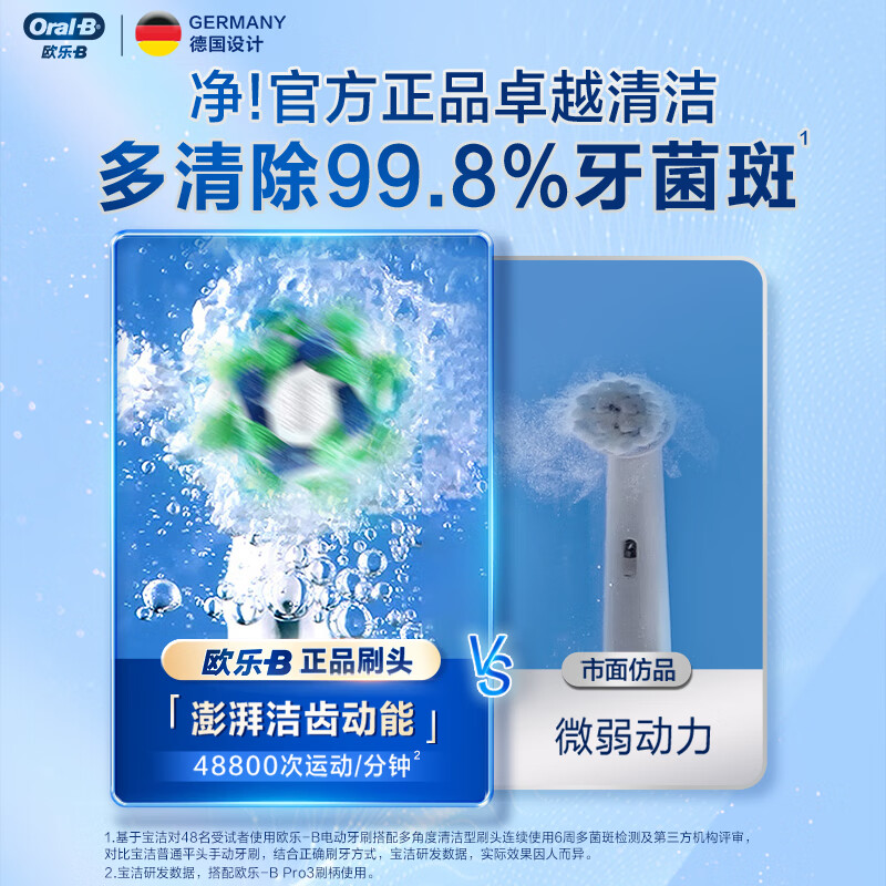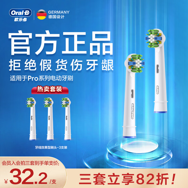 欧乐B电动牙刷头 成人牙线效果型3支装 EB25-3 适配成人D/P/Pro系列圆头牙刷 标准型软毛智能牙刷刷头价格:119.00元!