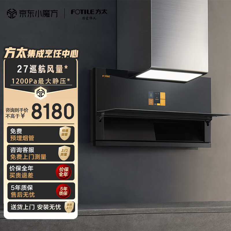 方太(FOTILE)侧吸油烟机家用大吸力27巡航风量挥手智控直流变频集成烹饪中心03-X1S【门店同款】价格:8180.00元!
