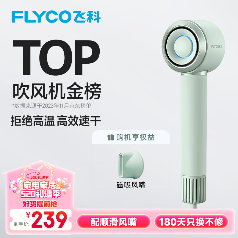 飞科(FLYCO)高速电吹风机送女友节日礼物大功率速干恒温负离子护发家用宿舍便携银河星环吹风筒FH6371水晶绿价格:369.00元!
