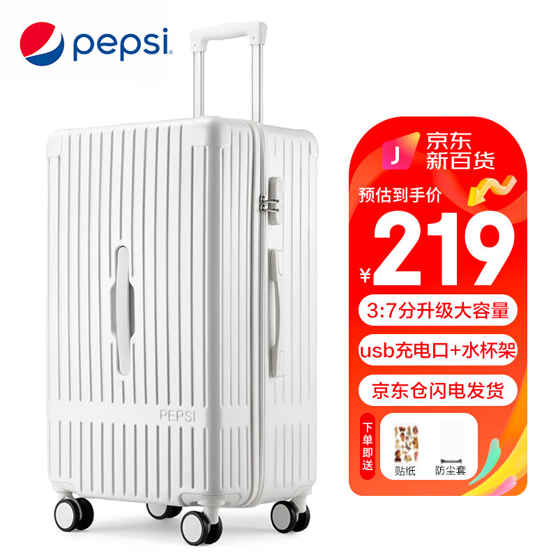 百事(PEPSI)行李箱男超大容量拉杆箱女24英寸旅行箱大号万向轮学生托运密码箱价格:219.00元!