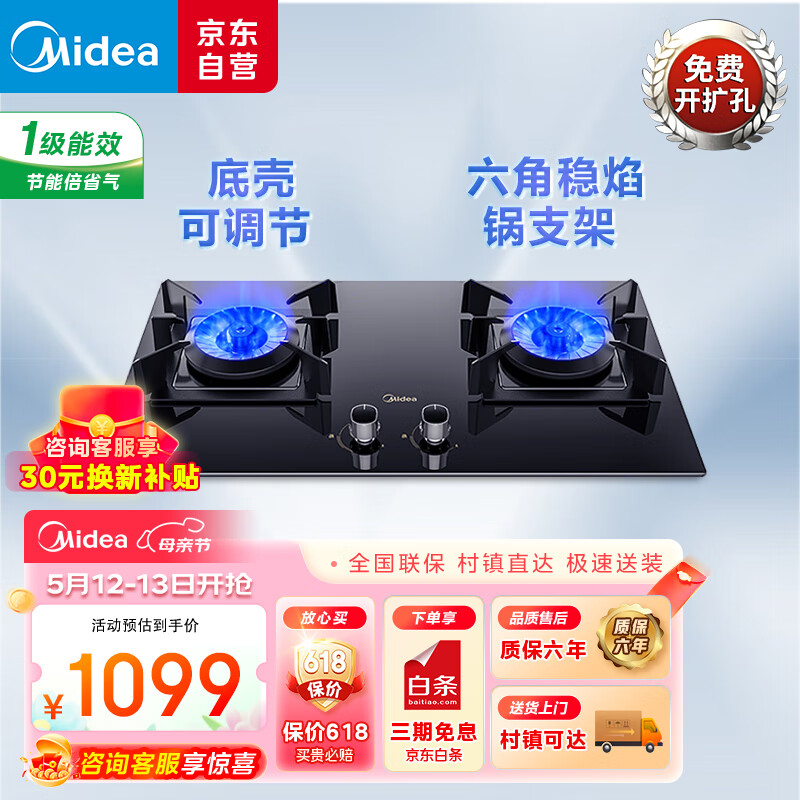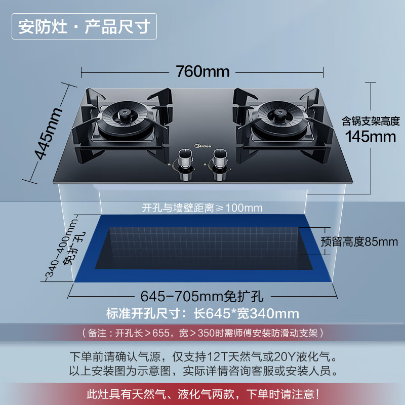美的(Midea)极光系列燃气灶双灶家用5.0KW大火力黑晶面板台嵌两用双灶 六脚锅支架 液化气灶Q70价格:1099.00元!