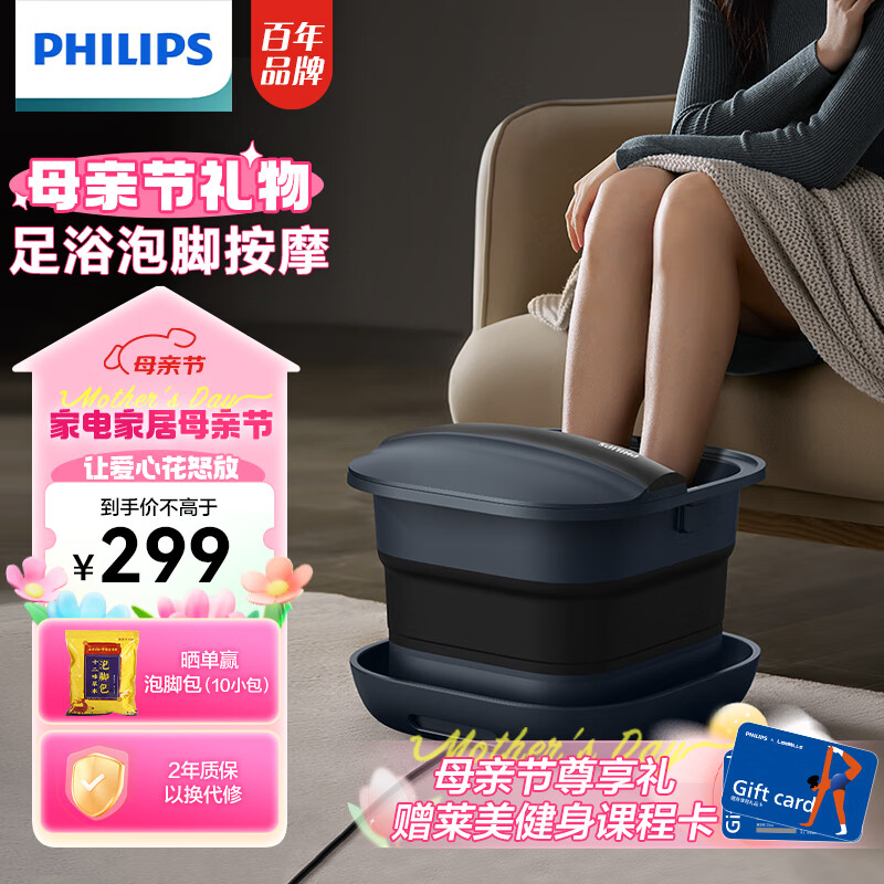 飞利浦(PHILIPS)泡脚桶加热洗脚盆加热自动按摩泡脚盆加热自动按摩足浴盆全自动泡脚桶折叠洗脚桶足浴桶母亲节礼物价格:329.00元!