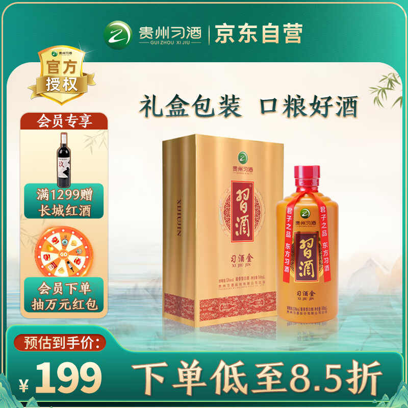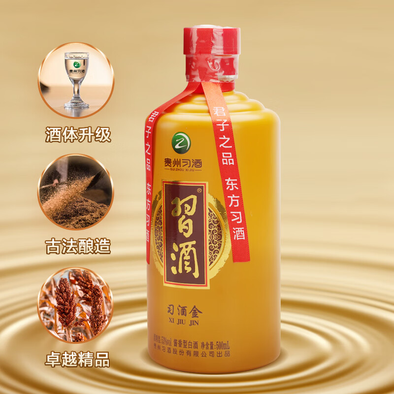 习酒习酒金 酱香型白酒 53度 500ml 单瓶礼盒装 贵州白酒价格:233.00元!