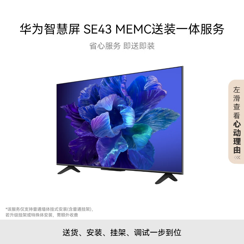 华为智慧屏 SE43 MEMC 43英寸+免费安装(送装一体含挂架)超薄4K超高清液晶卧室护眼电视机 HD43KHAA价格:1798.00元!