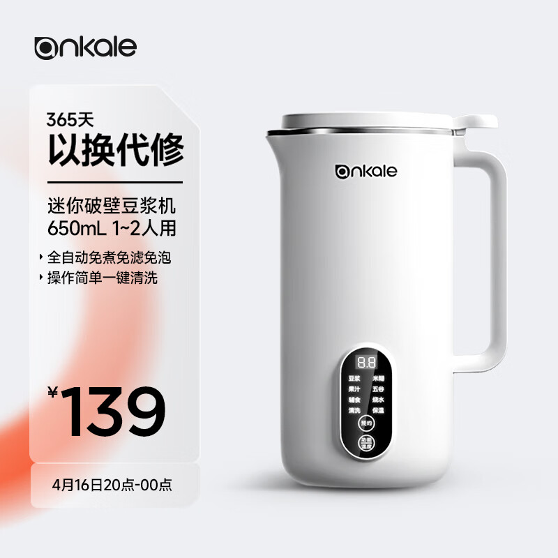 ankale安卡拉破壁机 豆浆机 迷你小型家用免洗 五谷杂粮全自动免煮 破壁豆浆机价格:129.00元!