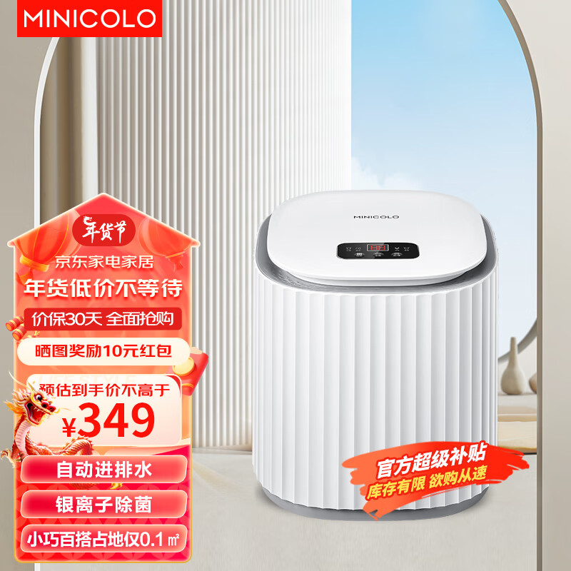 MINICOLO 1.5kg 内衣洗衣机 迷你洗衣机 内裤洗衣机 自动进出水 洗衣机小 银离子除菌珍珠白价格:349.00元!