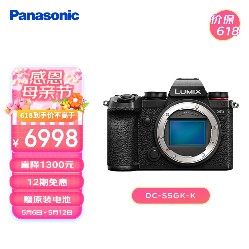 松下S5(Panasonic)全画幅微单相机 数码相机 约2420万有效像素 5轴防抖 双原生ISO V-Log内置价格:7998.00元!