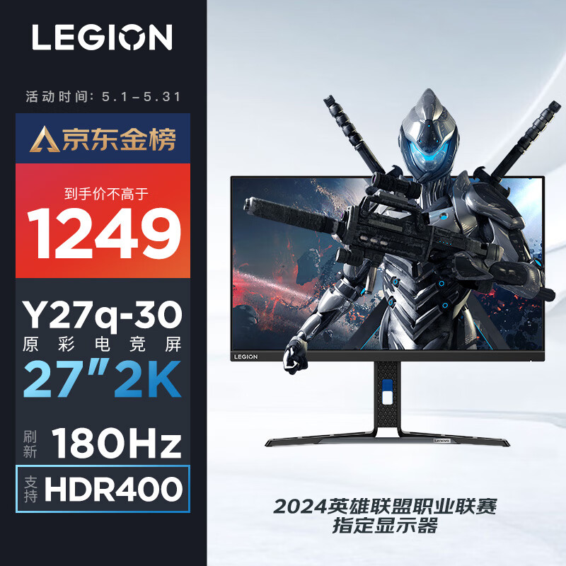 联想(Lenovo)拯救者27英寸2K Fast IPS 180Hz 低蓝光 FreeSync 1ms HDR400 升降旋转 音箱 电竞显示器Y27q-30价格:1249.00元!