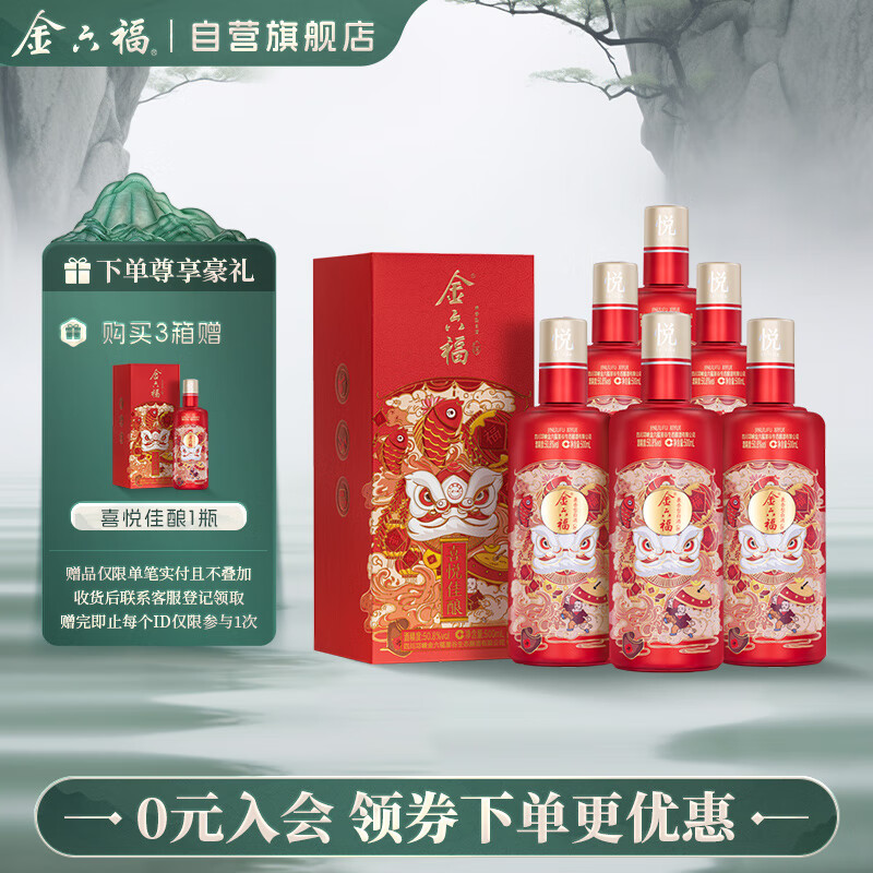 金六福 喜悦佳酿 50.8度 500ml*6 整箱装 浓清兼香型白酒【婚宴用酒】价格:379.00元!
