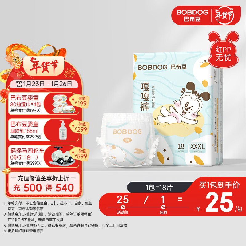 巴布豆(BOBDOG)嘎嘎裤拉拉裤裸感透气XXXL18片(18KG以上)婴儿尿不湿价格:22.00元!