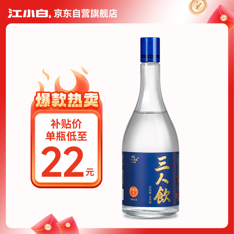 江小白 三人饮 清香型白酒 46度 500ml 单瓶 轻松口粮酒粮食酒价格:22.00元!