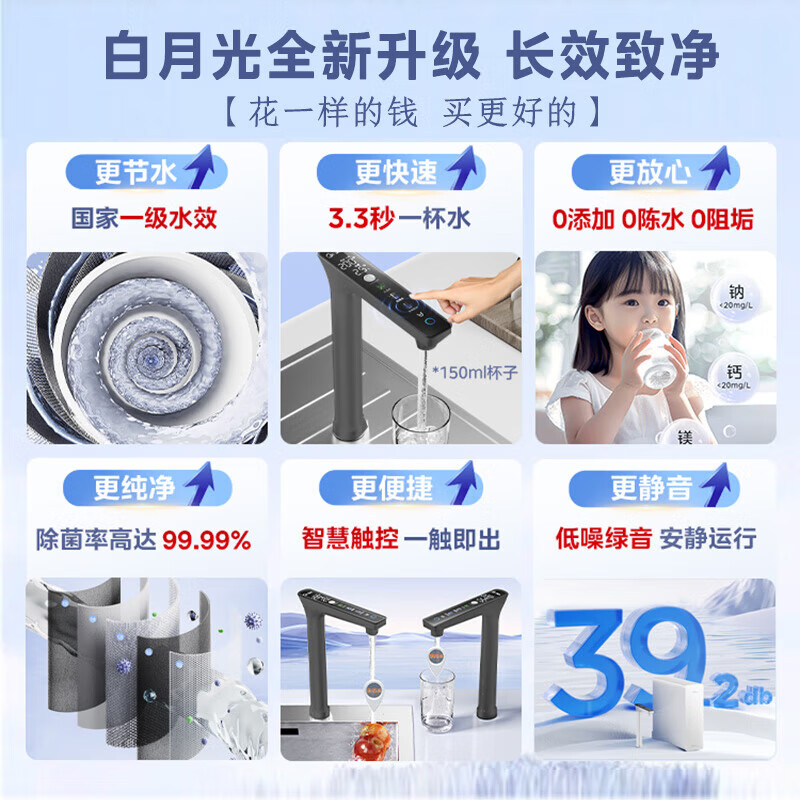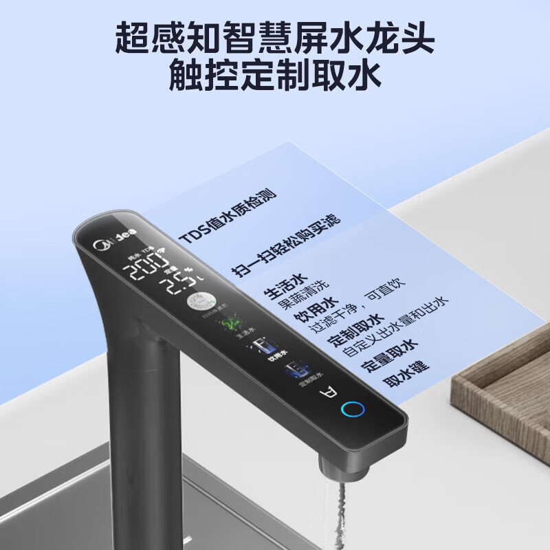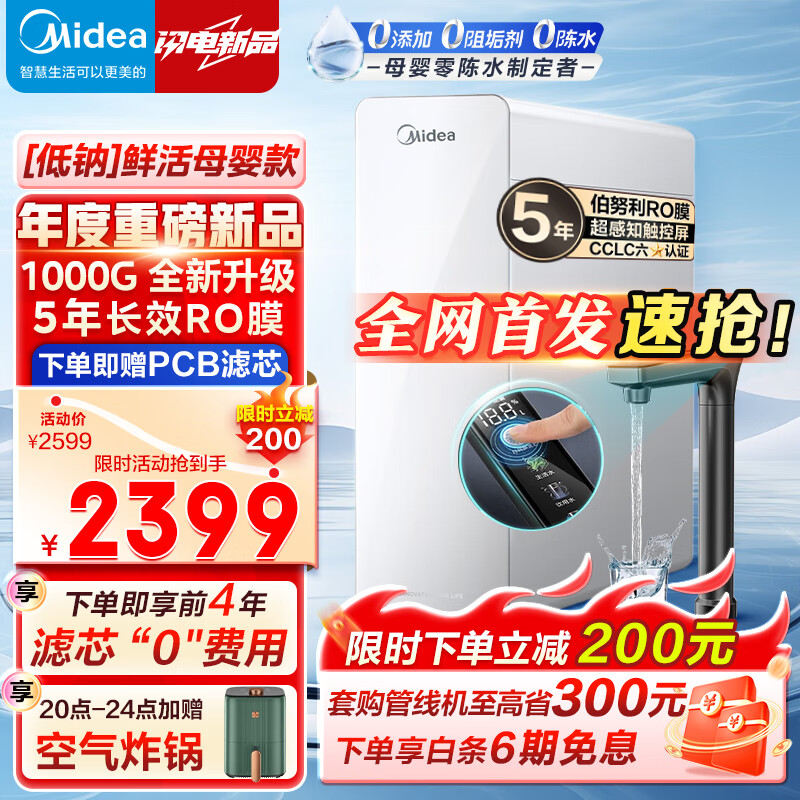 美的(Midea) 家用净水器直饮机白月光1000G pro 净水机5年RO滤芯反渗透厨下式净水全时零陈水超大流速2.72L/分 【新升级顶配款】智慧触控屏白月光1000G pro价格:2599.00元!
