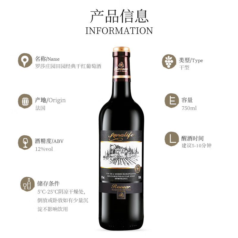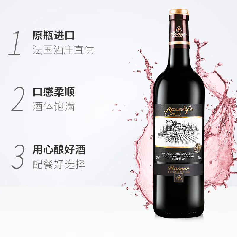 罗莎庄园干红葡萄酒 750ml*6瓶 法国原瓶原装进口红酒整箱价格:129.00元!