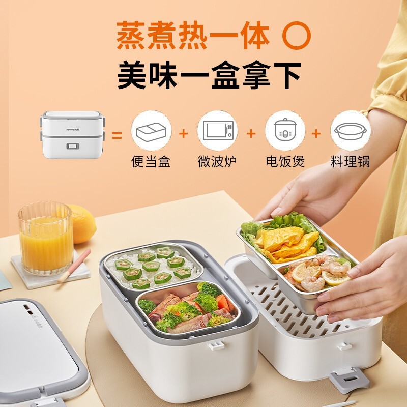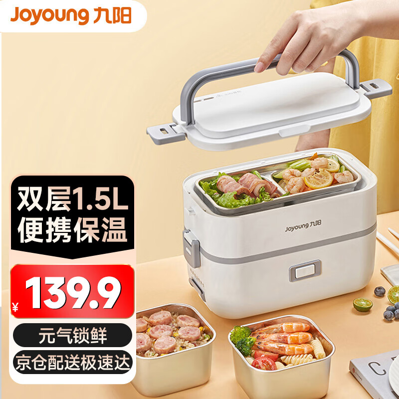 九阳(Joyoung)【九阳伴我】加热饭盒插电电热饭盒上班族自热锅保温饭盒热饭神器办公室不锈钢蒸煮智能恒温 【单键无菜单-双层-1.5L】FH191 1.5L价格:239.90元!