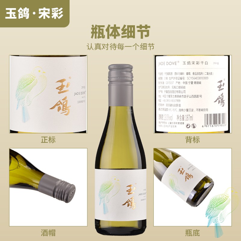 西鸽酒庄 宁夏贺兰山东麓产区 玉鸽宋韵葡萄酒 干白单支 187ml*1价格:59.00元!