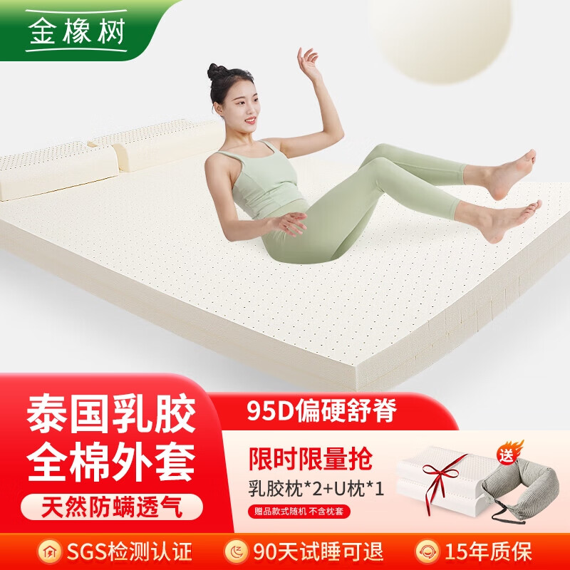 金橡树床垫 泰国进口天然乳胶床垫加厚榻榻米双人床垫 1.8米加硬云梦95D价格:928.00元!