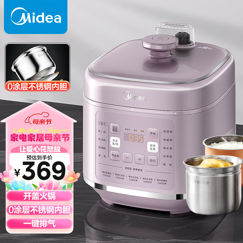 美的(Midea)少盐提鲜炖 深汤 智能电锅5L家用多功能开盖火锅 0涂层钢胆易清洁内胆高压锅C549G(3-6人食)价格:399.00元!