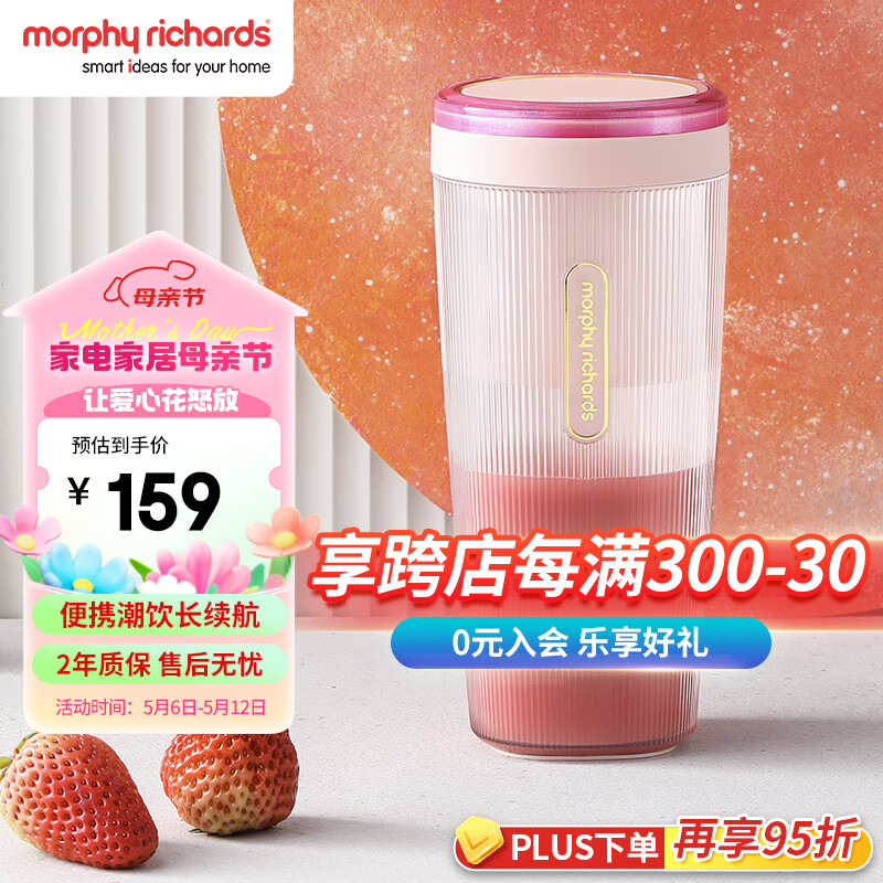 摩飞电器(Morphyrichards)榨汁机 便携式榨汁杯 网红无线充电果汁机 料理机迷你随行杯 MR9800 落樱粉价格:159.00元!