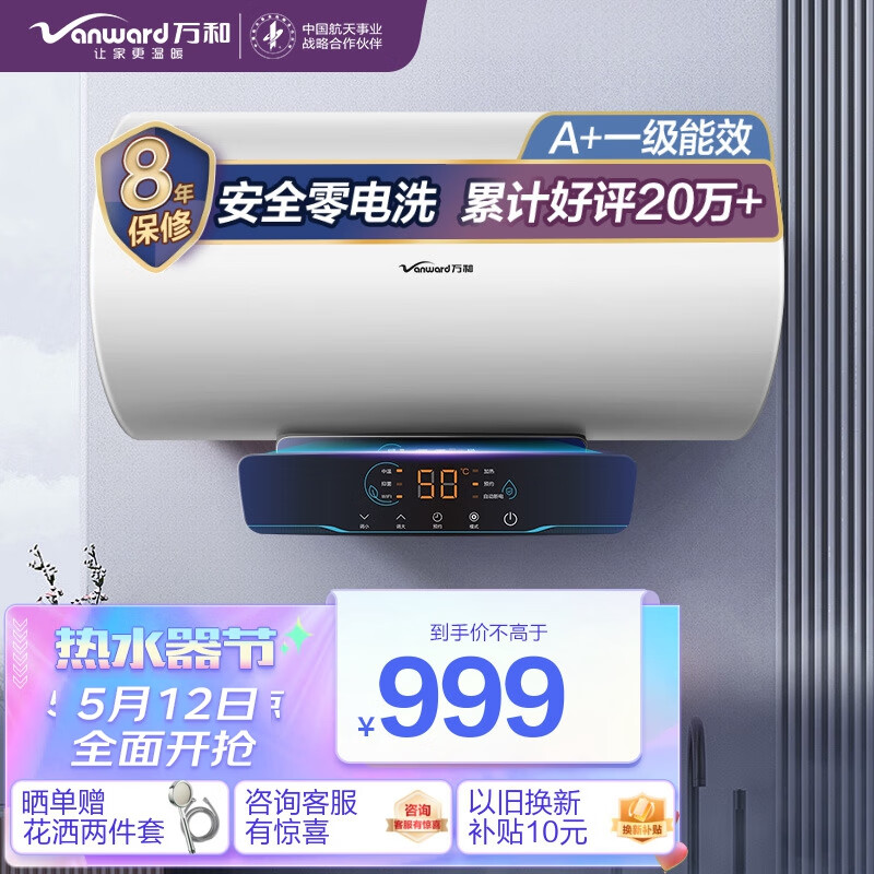 万和(Vanward)80升电热水器一级能效智能断电家用储水式速热高温杀菌E80-Q2WY10-20价格:1499.00元!