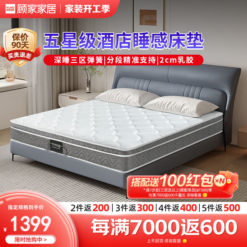 顾家家居 软硬两用床垫2cm乳胶三区整网独立弹簧M1016 1.5米价格:1399.00元!