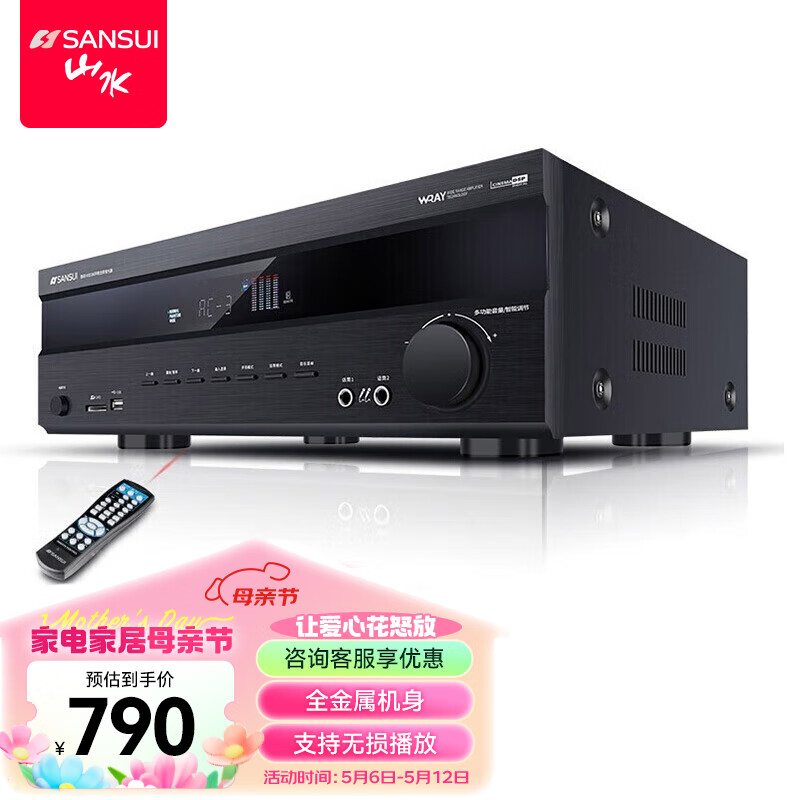 山水(SANSUI)UX66 功放机 家庭影院5.1声道AV功放机 高保真无线蓝牙家用卡拉ok功放价格:790.00元!