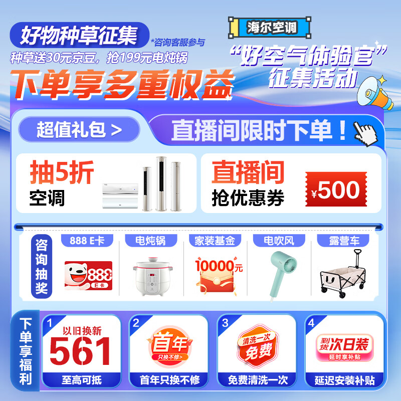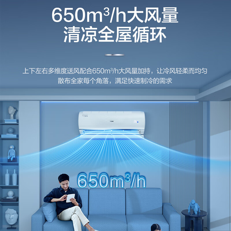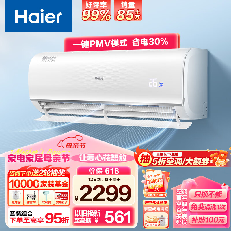 海尔(Haier) 大1匹 静悦 新一级 变频省电冷暖卧室挂式空调挂机光感护眠KFR-26GW/B1KGC81U1 以旧换新价格:2299.00元!