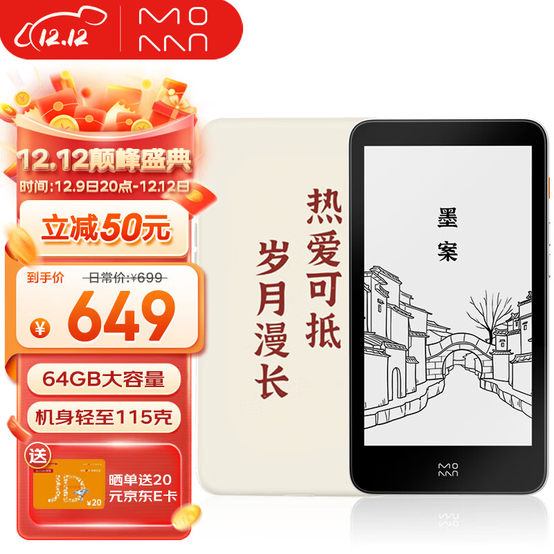 【上新】墨案 迷你阅Pro 5.2英寸电子书阅读器 墨水屏电纸书 读书器 静读银 64G 保护套·套装价格:699.00元!
