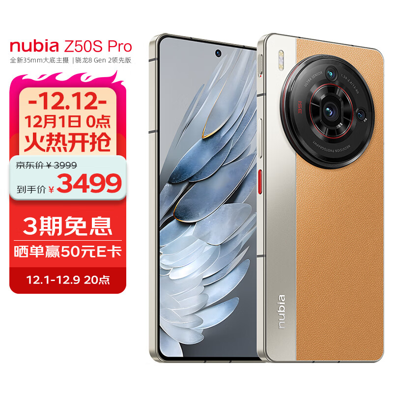 nubia 努比亚Z50S Pro 12GB+1T卡其 第二代骁龙8版 35mm高定大底主摄 5100mAh 1.5K直屏 5G手机游戏拍照价格:3499.00元!