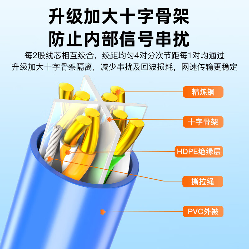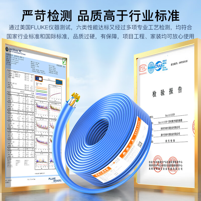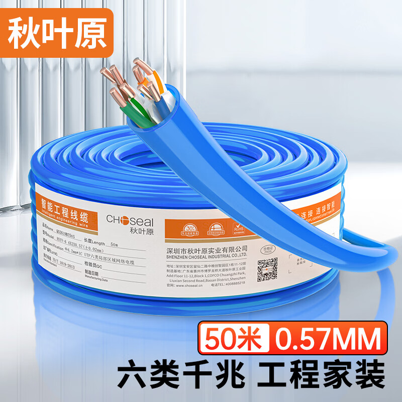 秋叶原(CHOSEAL)六类千兆网线【0.57±0.02mm】CAT6纯铜线芯阻燃PVC非屏蔽工程家装监控布箱线 50米QS2619BT50价格:159.00元!