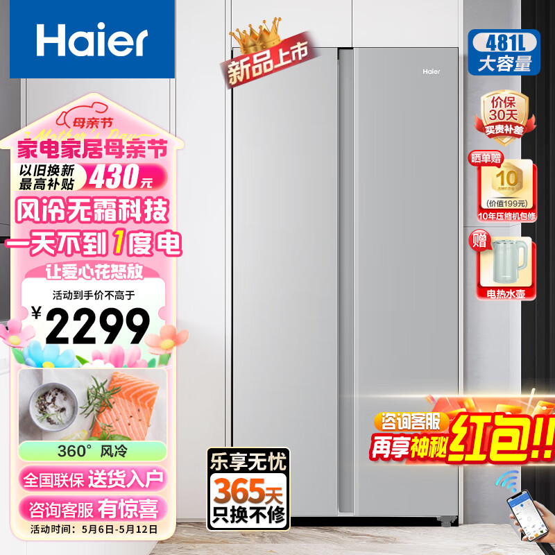 海尔(Haier)对开门冰箱 481升风冷无霜 智能智控 超薄家用电冰箱双变频家用电冰箱 双开门冰箱大容量节能省电价格:2299.00元!