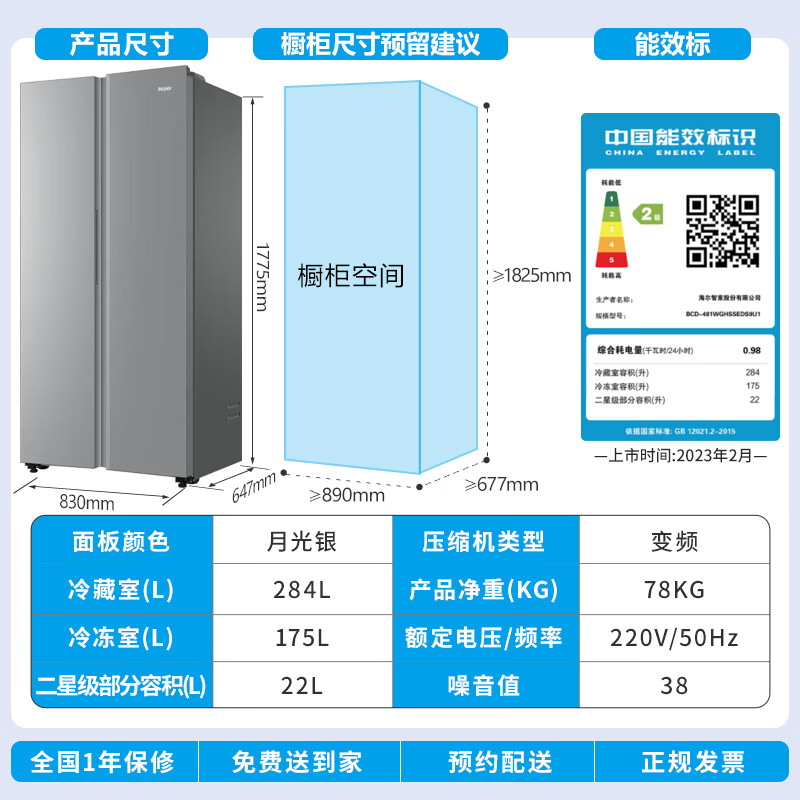 海尔BCD-481WGHSSEDS9U1配置参数: