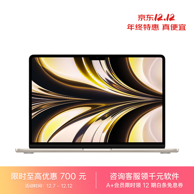 Apple MacBook Air 13.6 8核M2芯片(8核图形处理器) 8G 256G SSD 星光色 轻薄学习办公笔记本电脑 MLY13CH/A价格:8999.00元!