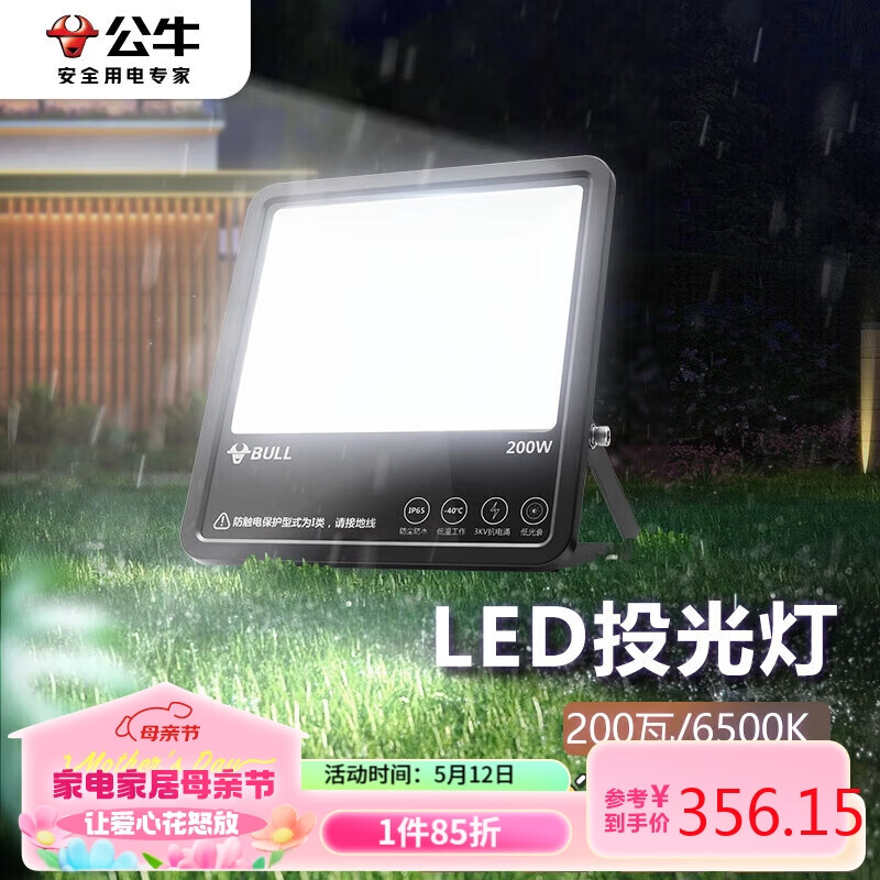 公牛(BULL)LED投光灯户外路灯庭院灯广告牌灯露营灯 IP65防水200W-6500K白光价格:419.00元!