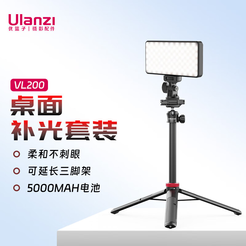 ulanzi 优篮子 VL200双色温补光灯桌面补光套装单反相机口袋便携直播美颜柔光灯人像摄影拍照打光灯价格:258.00元!