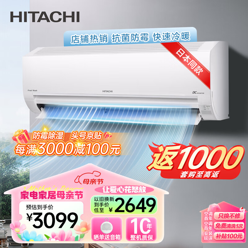 日立(HITACHI)白熊君 新3级能效1匹变频冷暖空调挂机低耗节能健康除菌自动除湿防潮以旧换新RAK/C-PE09PHBPC价格:3199.00元!