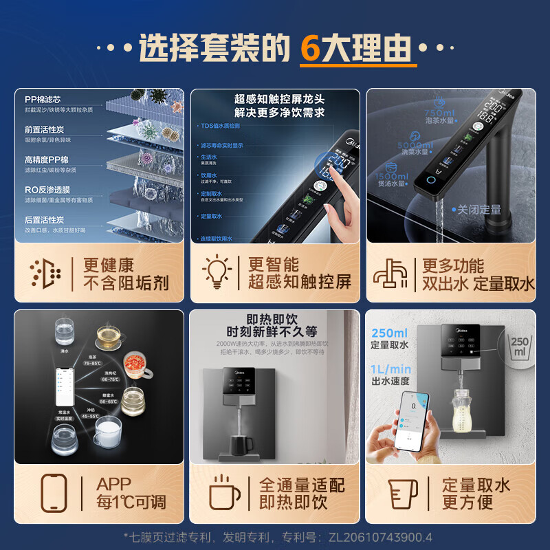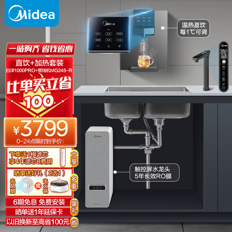 美的(Midea)直饮加热净水器套装【白泽1000Gpro+管线机MG245-R(908A升级款)】厨下RO 家用即热一体净饮机价格:3799.00元!