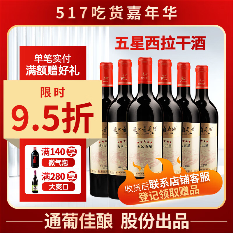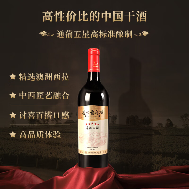 通化 1937 (TONHWA) 五星西拉干红葡萄酒 13.5%vol 晚安红酒 750ml*6 礼盒装 果酒价格:1135.00元!